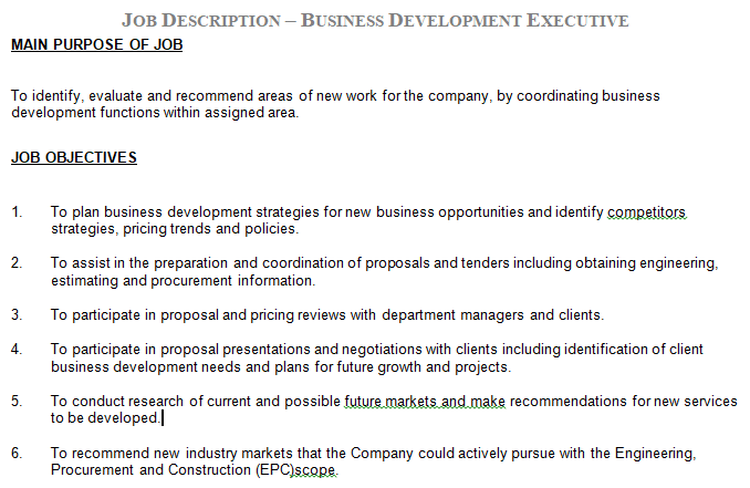 To identify, evaluate and recommend areas of new work for the company, by coordinating business development functions within assigned area.