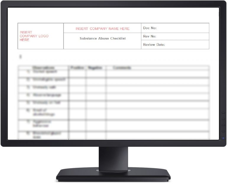 This document is a Substance Abuse Checklist which forms part of the Health and Safety sector