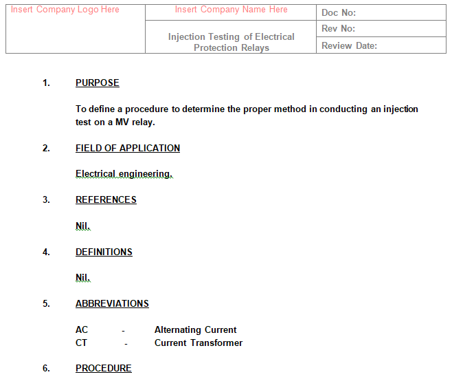 To define a procedure to determine the proper method in conducting an injection test on a MV relay.