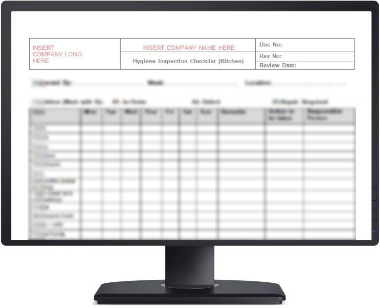 This document is a Hygiene Inspection Checklist (Kitchen) which forms part of the Health and Safety sector
