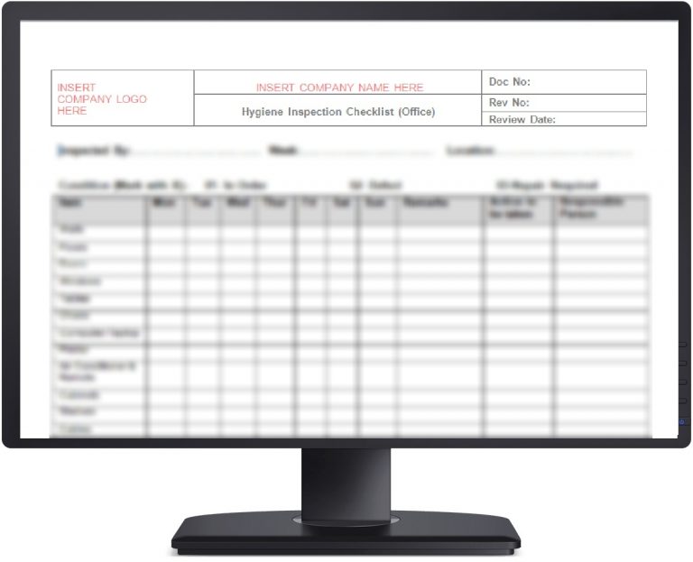 This document is a Hygiene Inspection Checklist (Office) which forms part of the Health and Safety sector