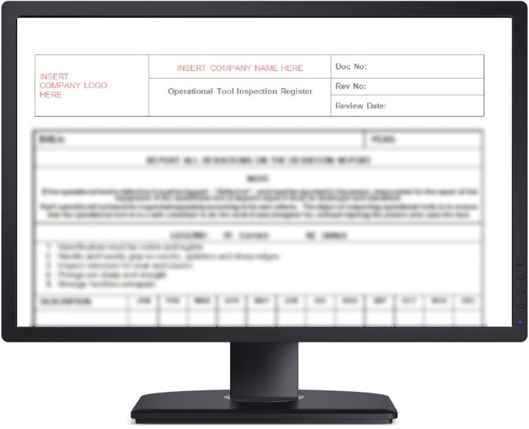 This document is a Operational Tool Inspection Register which forms part of the Health and Safety sector