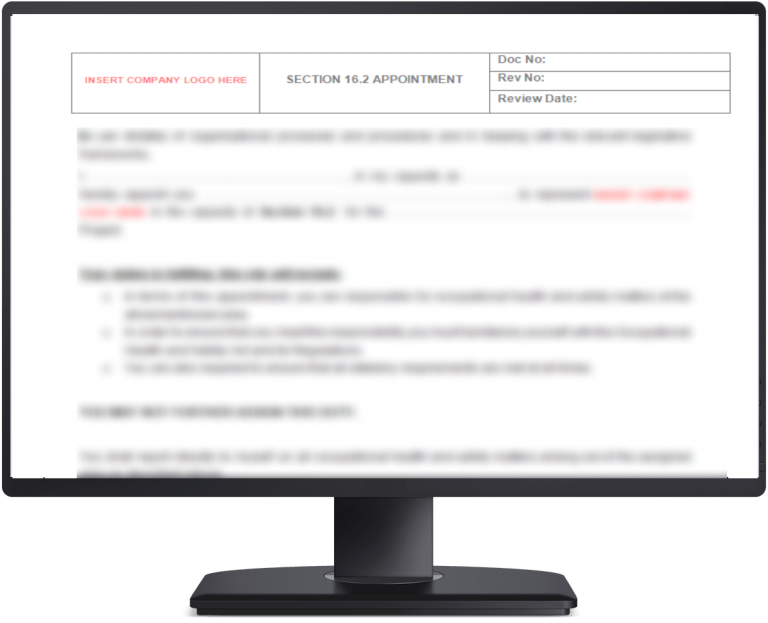 This document is a appointment letter for a person who will be responsible for occupational health and safety matters at the aforementioned area.