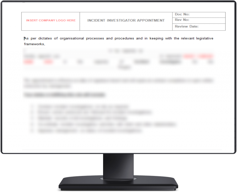 This document is a letter of appointment for a incident investigator for a worksite.